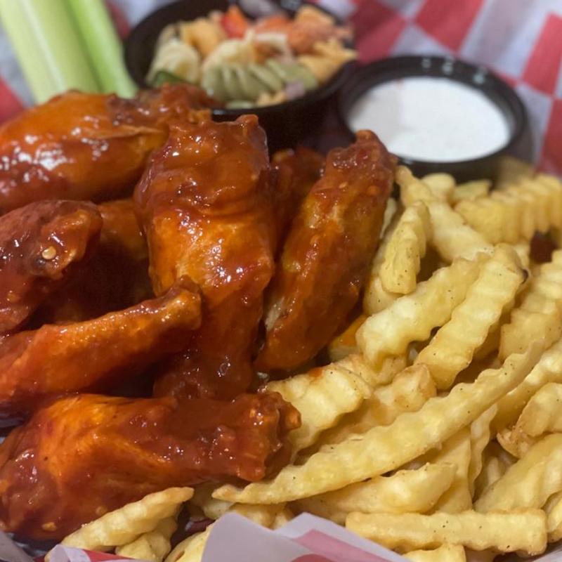 8 traditional bone-in wings tossed in your choice of wing sauce