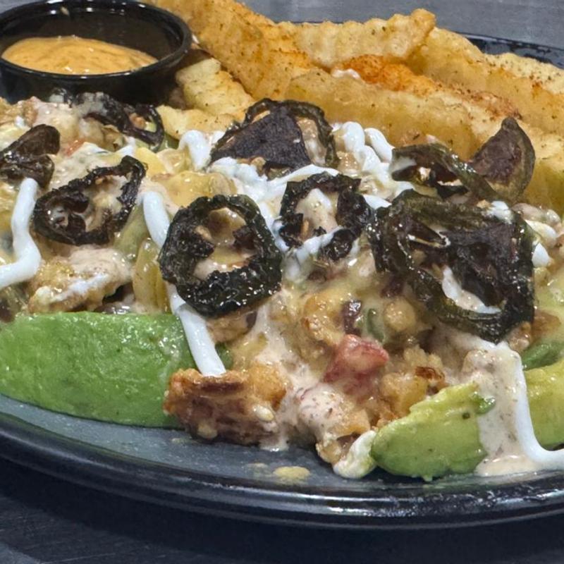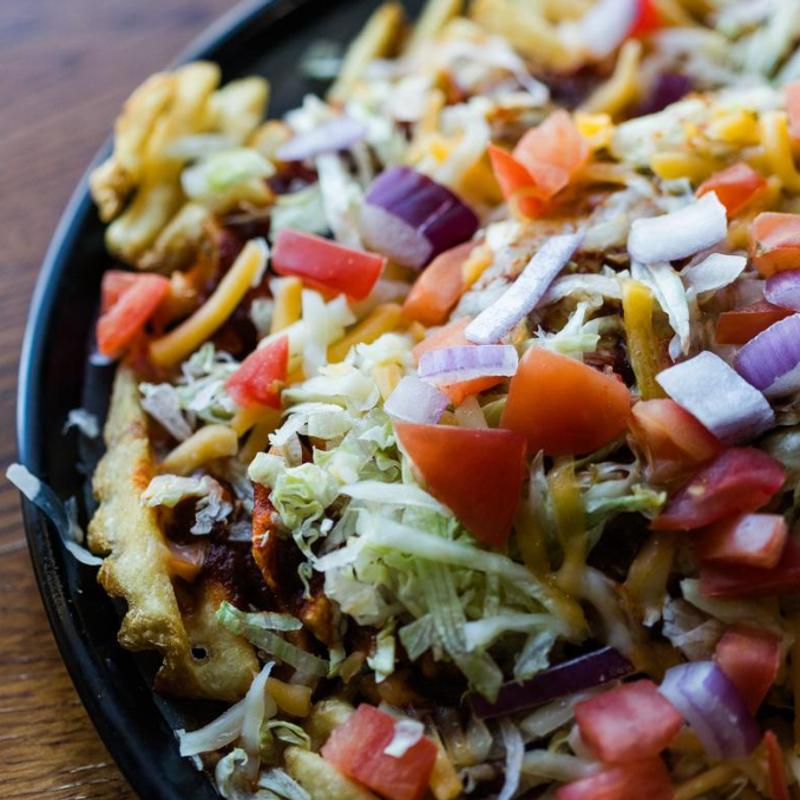 Choice of fries topped with shredded Colby Jack cheese, grilled onion, jalapeños, queso, and choice of ground beef, pulled pork, brisket, philly steak, or chicken, drizzled with sour cream